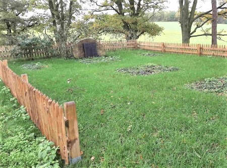 Kriegsgräberstätte an der B 71 zwischen Wiepke und Estedt am Günthersberg: Umzäunte Anlage mit gemeinsamer Namenstafel, davor Findling mit Erklärungstafel.