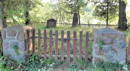 Kriegsgräberstätte für Gefallene des Ersten Weltkriegs am Ortsrand für 26 deutsche Soldaten (davon 10 unbekannt): Eingezäunte Fläche mit sechs kleinen flachen Namenssteinen, zwei großen stehenden Steinen (davon einer umgestürzt) und einer Stele mit EK-Zeichen oben und einer Widmung.