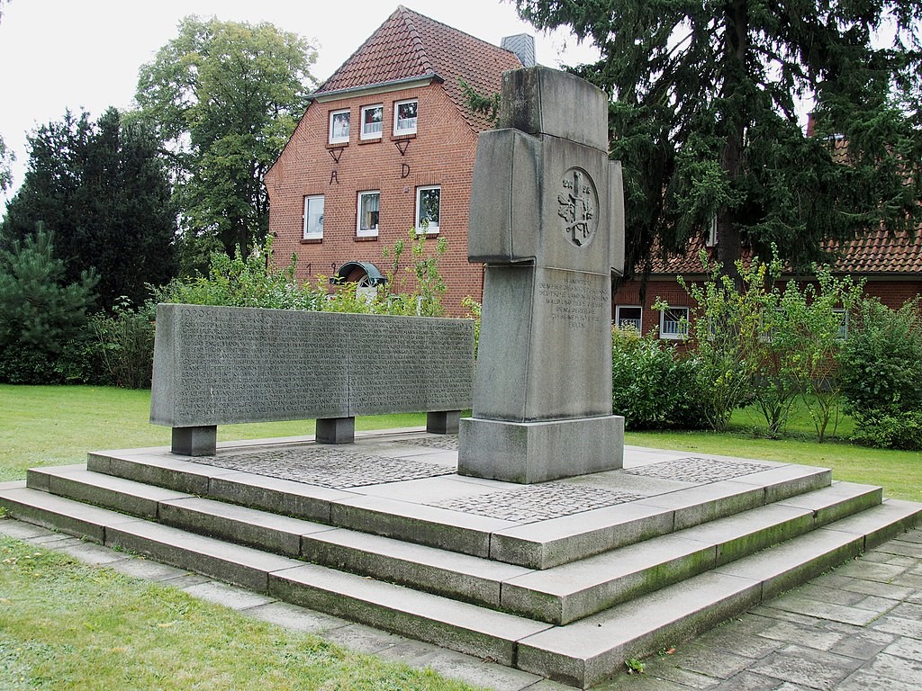 Neben der Kirche der ev. St. Michael Gemeinde ist auf dem Kirchplatz an der Steinförder Straße ein großes Steinkreuz aufgestellt. Vorder- und rückseitig sind dort die Namen der 86 Kriegstoten des Ersten Weltkrieges aufgeführt.