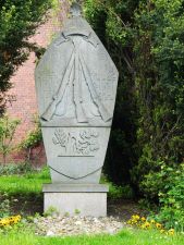 Das Sandsteinmonument hinter der Emmauskirche an der Mannesallee ist den Gefallenen beider Weltkriege gewidmet.