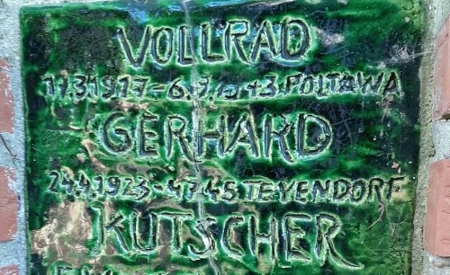 Gedenken auf Erbbegräbnisstätte Kutscher hinter der Kirche.