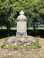 Denkmal auf dem Friedhof für die Gefallenen beider Weltkriege. Stele auf Natursteinsockel mit Eisernem Kreuz. An den Seiten die Namen der Gefallenen.