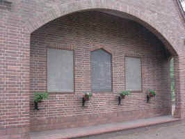In der Seitenwand der Friedhofskapelle eingelassene Gedenktafeln für die Kriegstoten beider Weltkriege.