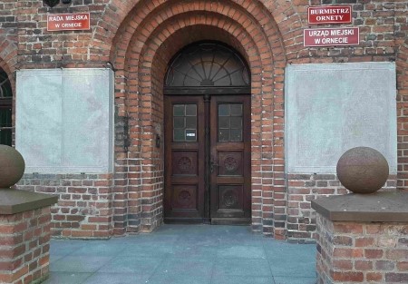 Nach 1945 wurde in Ostpreußen die deutsche Bevölkerung vertrieben und die meisten Denkmäler abgerissen, beschädigt oder umgewidmet. Hier sind die Steintafeln noch erhalten, als solche aber kaum noch zu erkennen, da die Inschriften verblasst und verwittert sind. Nur mit Hilfsmitteln ist noch alles lesbar.