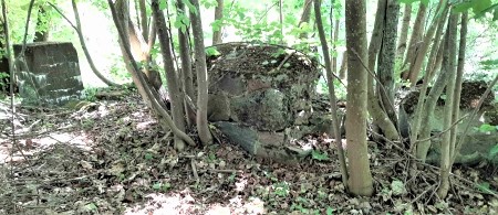 Ehemaliges Denkmal für die Gefallenen des Ersten Weltkriegs südöstlich des Ortes vor der Bahnlinie: Quader mit erkennbaren Inschriften in einem zugewachsenen Gelände. Reste des Feldsteinsockels sind ebenfalls noch vorhanden.