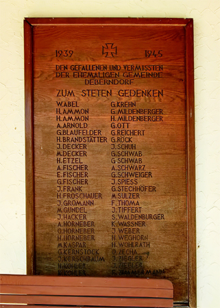 Die Gefallenen des 1. Weltkriegs aus Deberndorf und ein Name aus Rüttelsdorf sind auch auf dem Denkmal in Deberndorf verzeichnet.