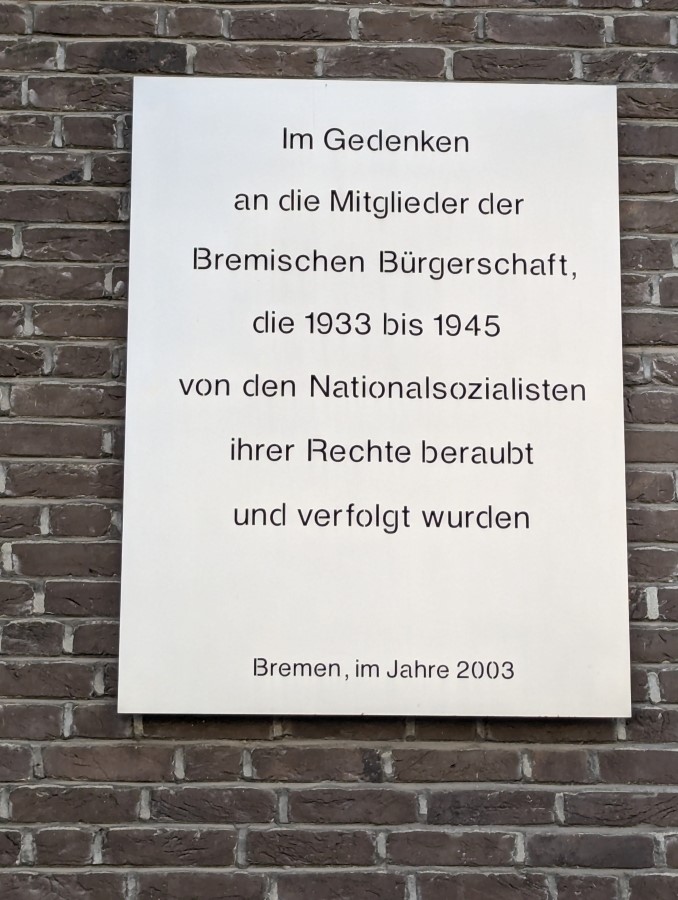 Rechts vom Haupteingang der Bremischen Bürgerschaft (Landtag) befindet sich an der Außenmauer