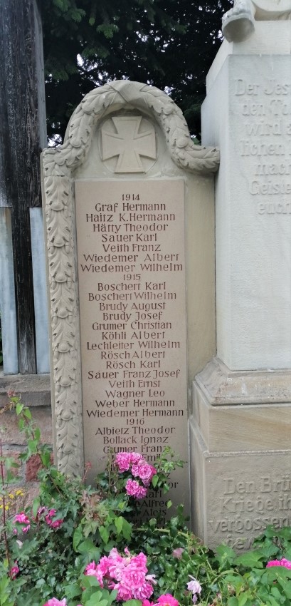 Den Brüdern, die im grossen Kriege ihr Blut fürs Vaterland vergossen, in ewiger Dankbarkeit gewidmet von der Gemeinde Appenweier.1921