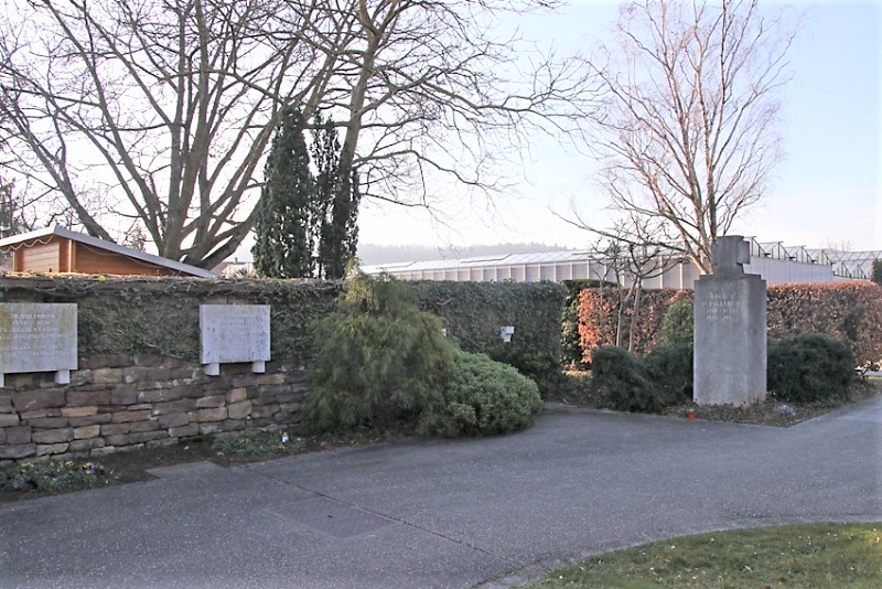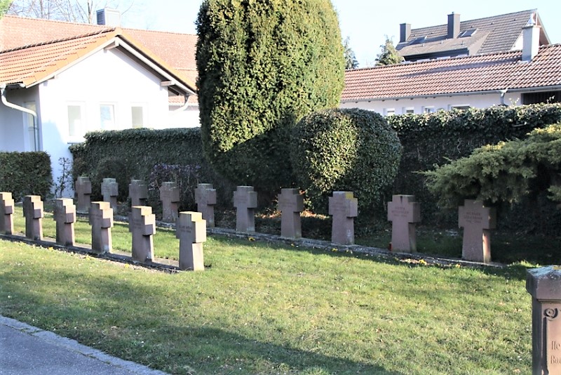 Kriegsgräber im Friedhof, sowie Daten von privaten Gedenksteinen.