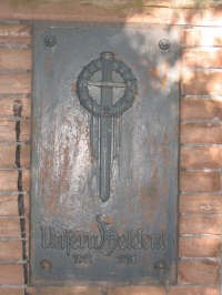 Auf der Vorderseite präsentiert sich ein Kreuz. Darunter befindet sich eine Platte mit Inschrift.