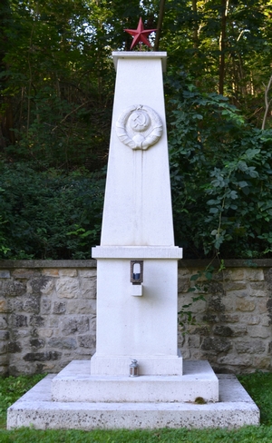 zentral einen Obelisken mit dem sowjetischen Emblem zur Erinnerung auf. Wichtig war offensichtlich auch, dass der