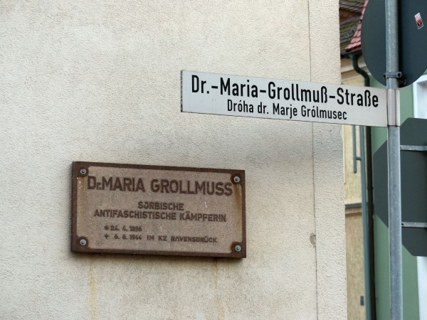 Gedenktafel in der Dr.-Maria-Grollmuß-Straße.