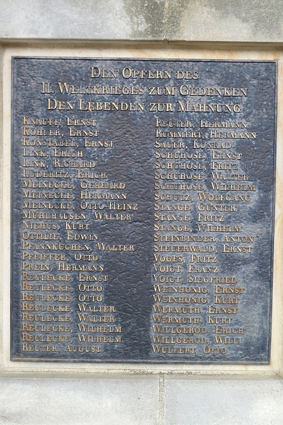 Vor der Kirche in Benzingerode: Ehrenmal für die Kriegstoten beider Weltkriege.