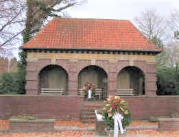 Die überdachte Gedenkstätte der Gefallenen des Ersten Weltkrieges befindet sich im Eingangsbereich zum Friedhof an der Grabsteder Straße.