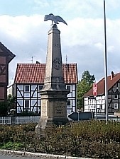Mitten im Ort steht eine hohe quadratische Sandsteinsäule, auf der ein großer Adler thront, für die 23 Teilnehmer des Krieges 1870/71.