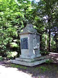 Stele auf einer mit Laubornamenten verzierten Steinplatte, oben ist ein Kreuz eingearbeitet (1870/71).