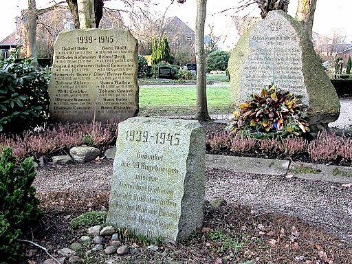 Auf dem Borgstedter Friedhof befindet sich das Ehrenmal für die Opfer beider Weltkriege: Ein großer Findling mit Inschrift und den Namen der Kriegstoten von 1914 bis 1918.