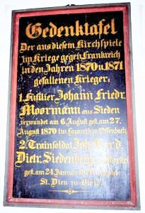 In der Kirche eine Holzplakette mit den Gefallenen aus 1870/71.
