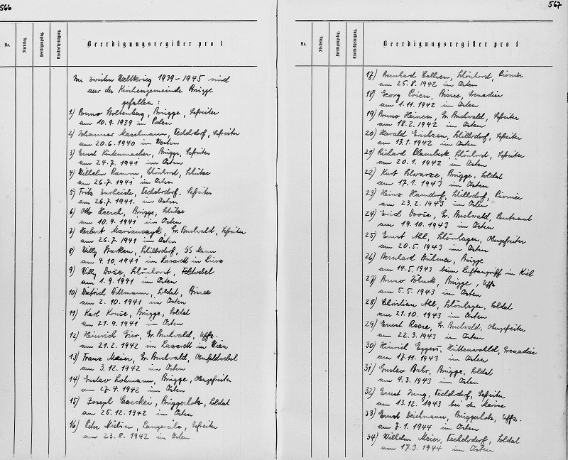 Im Zweiten Weltkrieg 1939-1945 sind aus der Kirchengemeinde Brügge gefallen: (60 Namen)