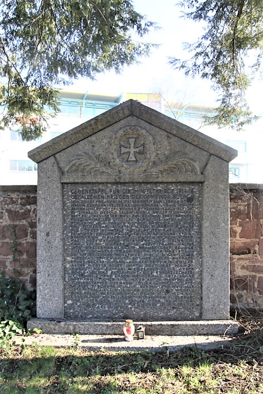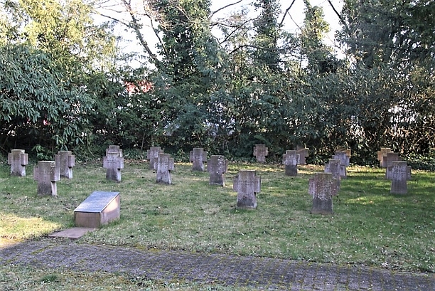Denkmal im Friedhof, an zwei Stellen Kriegsgräber, sowie Daten von privaten Gedenksteinen.
