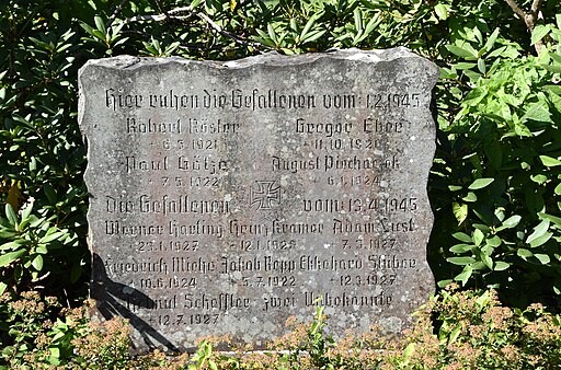 Auf dem Friedhof 13 Gefallene aus den Kämpfen im Harz vom 01.02.1945 und vom 13.04.1945 in einem Kameradengrab.