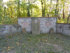 Im Eingangsbereich des Friedhofs befindet sich eine Gedenkwand für Gefallene des Ersten Weltkriegs (2 Tafeln in der Wand)