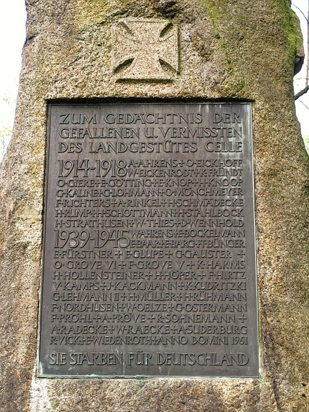 ZUM GEDÄCHTNIS DER GEFALLENEN U. VERMISSTEN DES LANDGESTÜTES CELLE