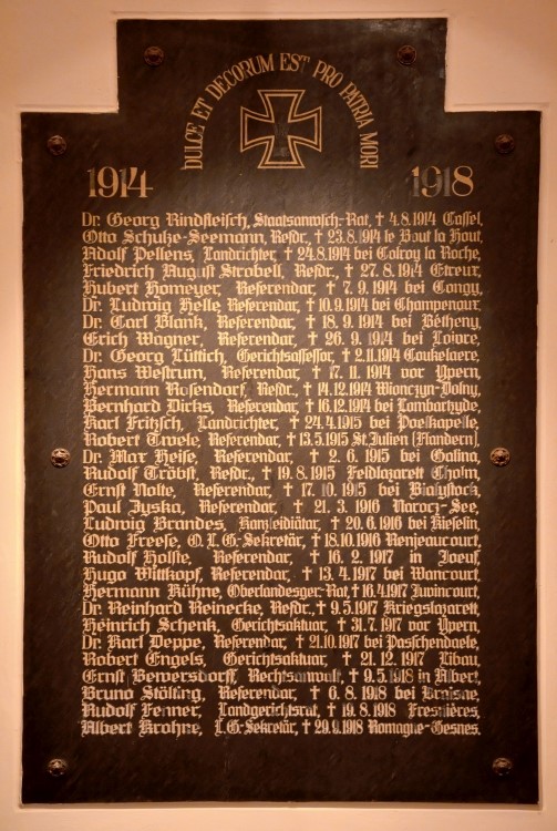 Im Treppenhaus des 1840-1843 erbauten Gebäude des Oberlandesgerichtes Celle ist eine Gedenktafel mit den Namen der Gefallenen des Gerichtes aufgehängt.