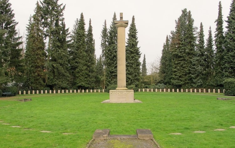 Sehr gepflegte Denkmalanlage/Kriegsgräberstätte im Westen des 1919 eröffneten Celler Stadtfriedhofs. Um eine 12 Meter hohe Gedenksäule mit bekrönenden Eisernen Kreuz (gestiftet vom Celler Industriellen Harry Trüller) für die Gefallenen des Ersten Weltkriegs reihen sich 3 konzentrische Kreise mit Grabplatten bzw. Stelen für kriegsgefallene Soldaten beider Weltkriege. Daneben sind drei weitere Grabfelder vorhanden.