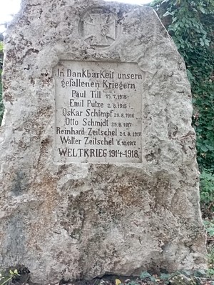 Unmittelbar an der Dorfkirche befindet sich ein Gedenkstein für die Opfer des Ersten Weltkrieges.