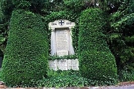 Ehrenmal auf dem Dasper Friedhof an der Heyener Straße. Aufgrund starken Efeubewuchses sind die Namen von zwei Gefallenen des