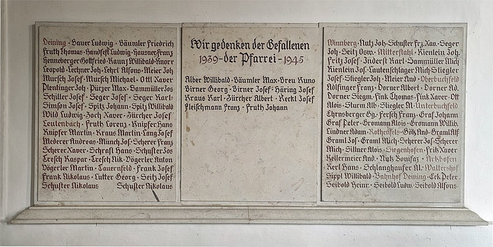 Die Gedenktafel (2. Weltkrieg) der Pfarrei Deining führt zusätzlich die Namen der Gefallenen (keine Vermissten) auf, aus den Orten: