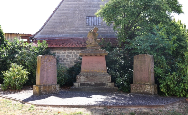 Figur eines knienden und betenden Soldaten auf einem Sockel in dessen Seitenwänden die Namen der Gefallenen und Vermissten des 1. Weltkrieges eingeschlagen sind. Auf der Vorderseite befindet sich eine Gedenkinschrift.