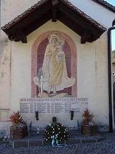 An der Aussenseite der Kirche des Heiligen Nikolaus, befindet sich ein Bildnis Maria mit Kind.