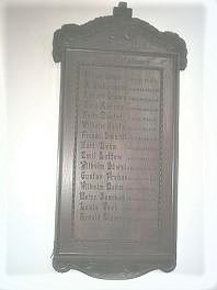 Die hölzerne Gedenktafel befindet sich in der evangelischen Kirche zu Dierhagen.