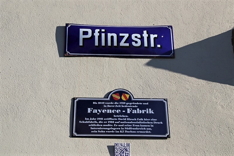 Gedenktafel an einem Haus in der Pfinzstraße.