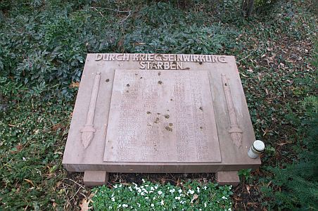 Eine Sandsteinplatte mit den Opfern, die durch Kriegseinwirkung starben.