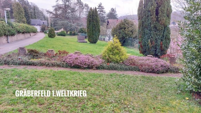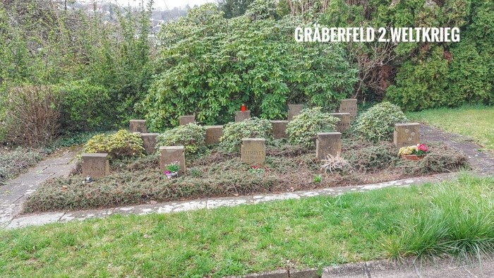 In unmittelbarer Nähe wurde ein weiteres Gräberfeld für die Gefallenen des Zweiten Weltkriegs eingerichtet. Hier fanden 14 Gefallene und Zivilopfer ihre letzte Ruhe.