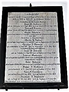 Gedenktafel in der Kirche. Sie ist den Gefallenen der Kriege 1848-51, 1864 und 1870/71 gewidmet.