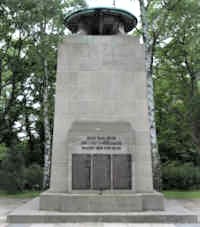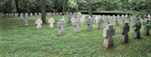 Betonkreuze in Form des Eisernen Kreuzes für die Kriegstoten des Ersten Weltkrieges (rechts und links der Grabstellen für Kriegstote des Zweiten Weltkrieges).