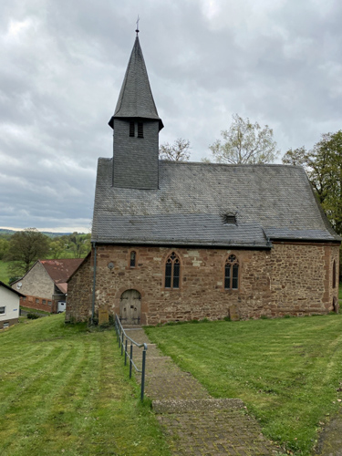 Der Friedhof in Ernsthausen liegt direkt an der Hauptstraße. Ein steiler Weg führt von der Straße direkt zur