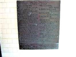 An der Friedhofshalle sind zwei Namenstafeln aus Metall angebracht.