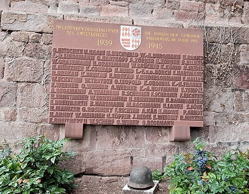 Gedenktafel für die im Zweiten Weltkrieg Gefallenen am Sakristeianbau, Ostchor.