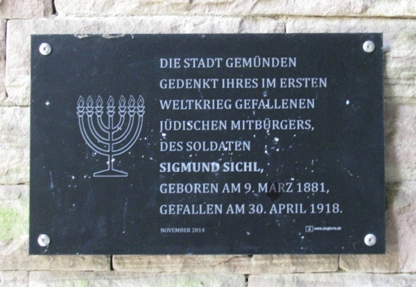 SICHEL Sigmund. Er war der einzige Gefallene der jüdischen Gemeinde der Stadt Gemünden.