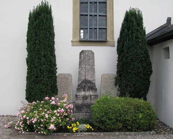 Standort des Denkmals ist an einer Längswand der Kirche St. Antonius am Zugang zum Friedhof und der Kirche.
