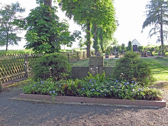Kriegsgrab für hier bestattete, fremde Soldaten auf dem Friedhof, am Ortseingang aus Richtung Sparnberg.