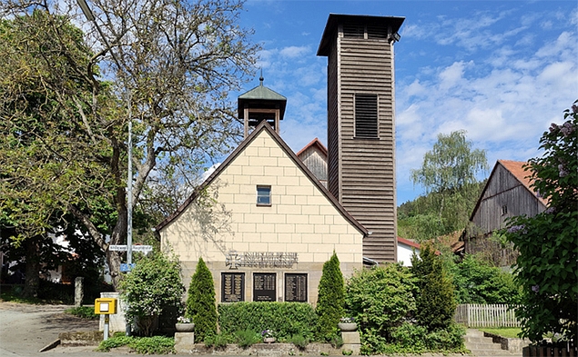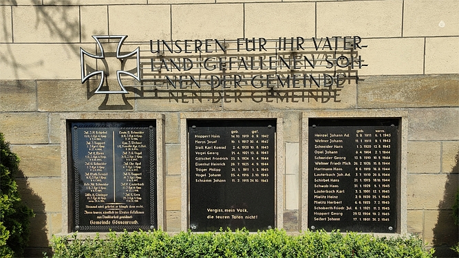 Gedenktafeln für die Gefallenen und Vermissten beider Weltkriege in der Ortsmitte.
