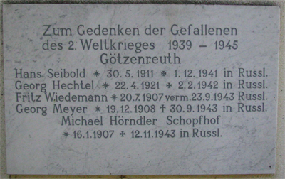 Alle Gefallenen und Vermissten sind auch auf dem Denkmal Kammerstein eingetragen (separater Beitrag).