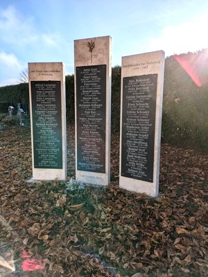 Auf dem Friedhof von Großschwabhausen, Am Anger, wurden drei Tafeln aufgestellt, die die Namen von 41 Opfern des Zweiten Weltkrieges nennen.