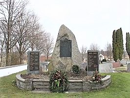 Denkmal für die Gefallenen beider Weltkriege und Einzelgedenken auf dem Friedhof.